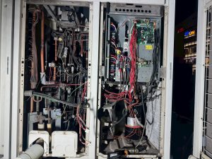 今回の修繕箇所は圧縮機といわれる空調機の心臓部分に当たる部品及び関連センサー、基盤にて発生した部品不良でした。